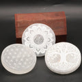 Purification : jamais à l’eau (mica fragile) • fumigation (sauge/encens) • bol tibétain/sons • fleur de vie / géométrie sacrée.