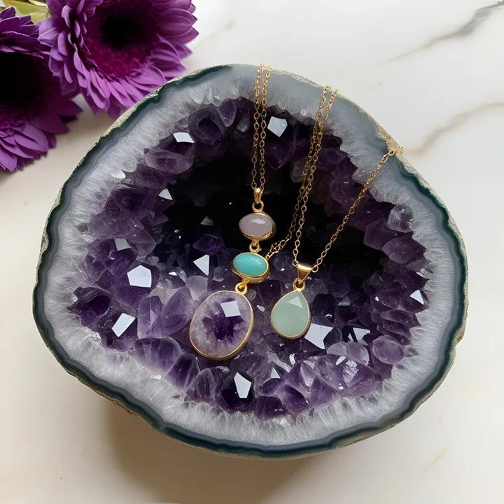 Saviez-vous que l'améthyste a le pouvoir de recharger l'énergie de vos autres pierres et bijoux ? Placez-les simplement sur votre géode améthyste pendant quelques heures et laissez la magie opérer.