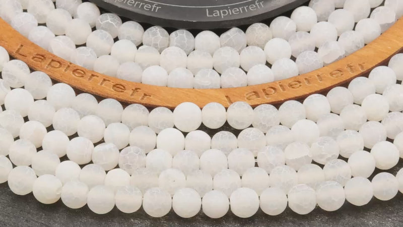 Important : Ces perles sont fabriquées à partir d'Agate blanche naturelle qui a subi un traitement thermique pour obtenir l'effet craquelé. Chaque perle est unique de par le motif des craquelures internes.