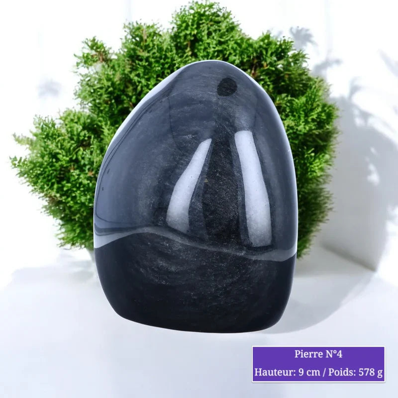 Chaque pièce d'Obsidienne Argentée est unique par ses reflets et son histoire. Sélectionnez votre pierre préférée parmi nos photos contractuelles, et recevez exactement celle qui vous a séduit.